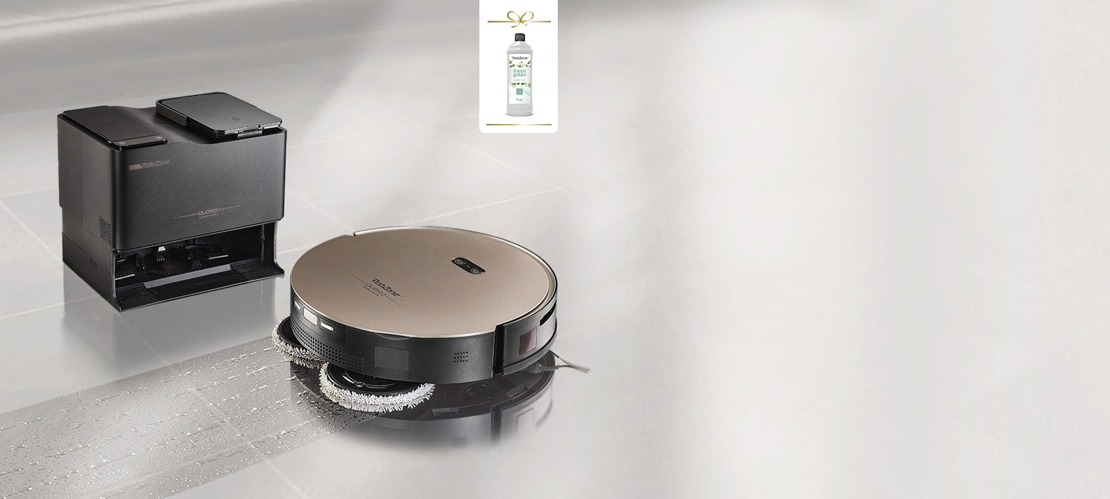 All Comfort stanice zajistí plně automatické vytírání a maximální komfort užívání pro vás. Mopy se v průběhu úklidu opakovaně samy ve stanici vyperou čistou vodou a po skončení úklidu se vysuší horkým vzduchem. Automaticky se doplňuje i čistá voda do nádržky v robotovi, kterou potřebuje pro vytírání podlahy. Volit si můžete jak intenzitu mopování, tak interval praní mopů podle typu podlahy a míry znečištění.