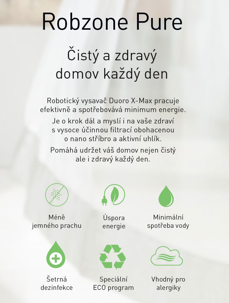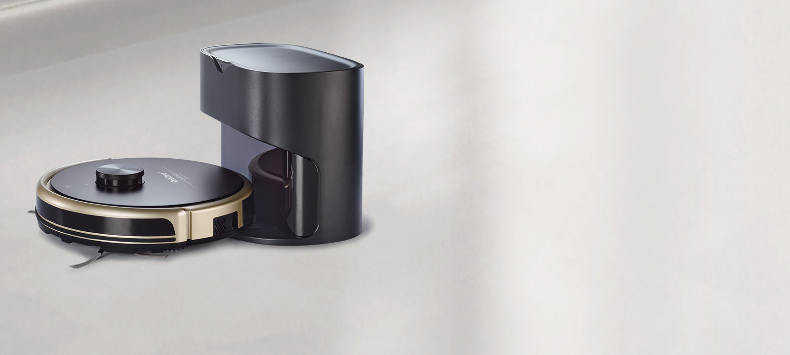 Duoro X-Max je nastaven pro spolupráci s nabíjecí základnou s funkcí automatického odsávání nečistot. Po skončení úklidu nejen automaticky dobije energii, ale také vysype sběrný koš. Díky tomu se vyhnete jakémukoliv kontaktu s prachem a stačí přibližně jednou za měsíc vyměnit ekologický sáček.