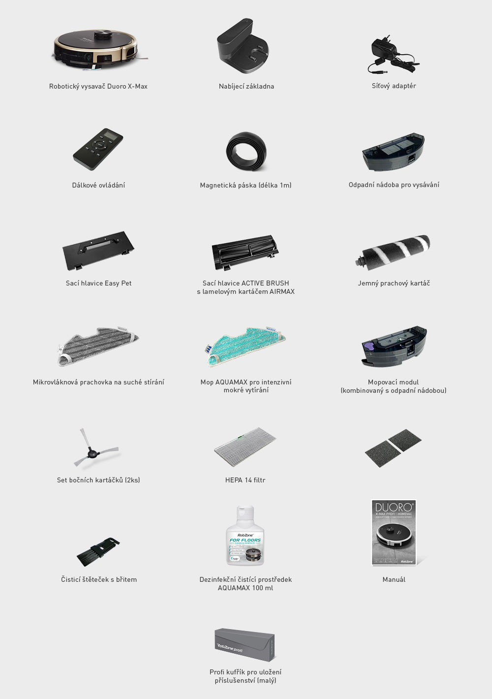 Duoro X-Max je připraven jak na mokré vytírání, tak na úklid každodenního prachu. Na každý typ úklidu má připraven speciální mop. Antistatickou prachovku pro stírání jemného prachu a Aquamax mop pro intenzivní mokré vytírání. Snadná příprava Vám zabere minimum času, a tak vytírat můžete klidně každý den.