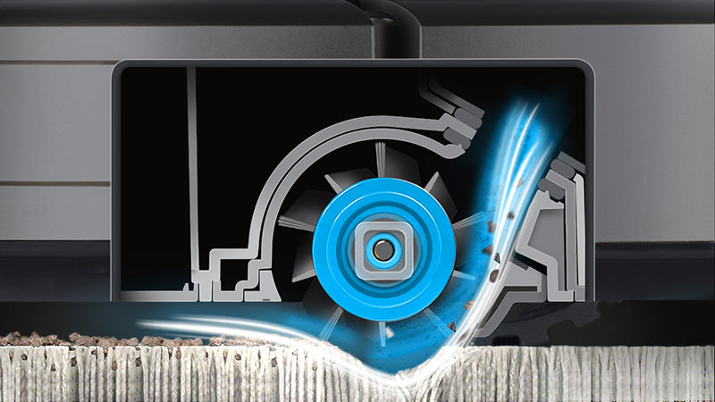 Chytře utěsněná nasávací komora umožňuje vzduchu proniknout mezi vlákna koberce a vysát i hluboko usazené nečistoty a prach. Síla sání je téměř dvojnásobná a dosahuje tak výrazně vyšší účinek na kobercích i na hladkých podlahách.