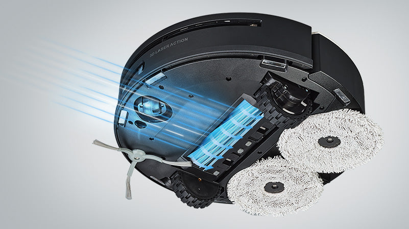 Průlomová technologie vysávání 10 000 AIRMAX technology se speciálním lamelovým kartáčem přináší bezkonkurenční úklid všech typů podlah. Dosahuje až o 70% vyšší účinek vysávání na kobercích a o 50% vyšší účinek na hladkých podlahách. Budete překvapeni kolik prachu je ukryto ve vašich kobercích, které se zdály na pohled čisté a kolik prachu dokáže Robzone vysát z hladké podlahy.