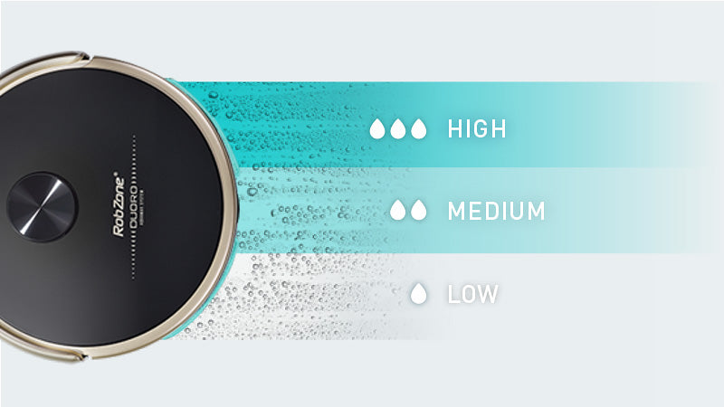 Jednoduše nastavíte jedním kliknutím v mobilní aplikaci jakou intenzitu máčení mopu požadujete. Můžete tak více znečištěnou podlahu vytřít mokřejším mopem a na citlivé povrchy jako je třeba dřevo použít nízkou intenzitu máčení.