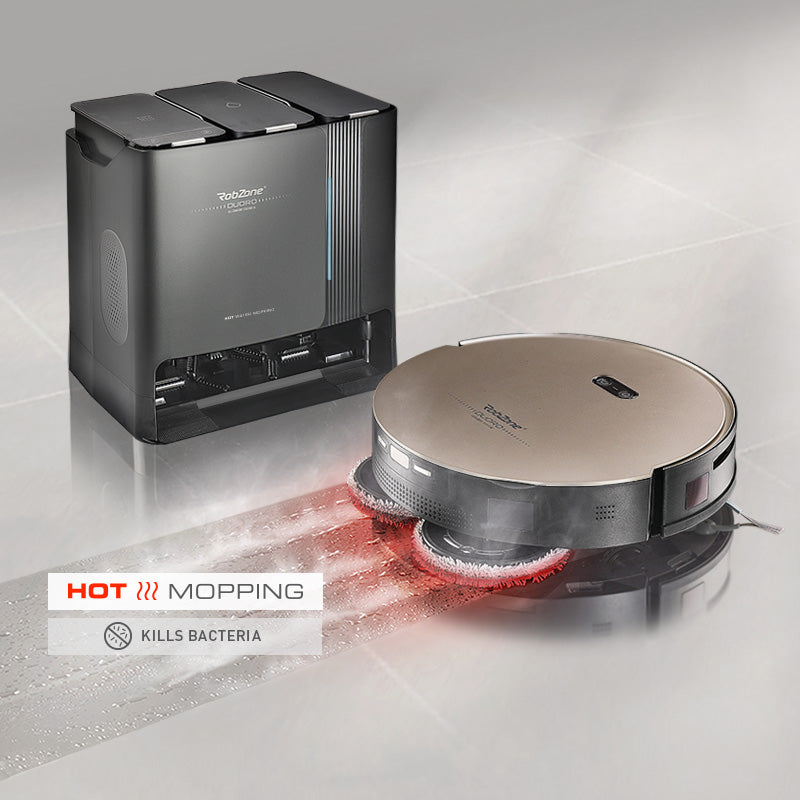 Úplnou novinkou je vytírání horkou vodou i v průběhu úklidu. Většina modelů nabízí pouze praní mopů teplou vodou, ale v průběhu úklidu používá k vlhčení mopů studenou vodu. Duoro X-Comfort Hot XL načerpá do interní nádobky horkou vodu, kterou používá po celou dobu úklidu. Poradí si tak velmi dobře i s odolnou a mastnou špínou.