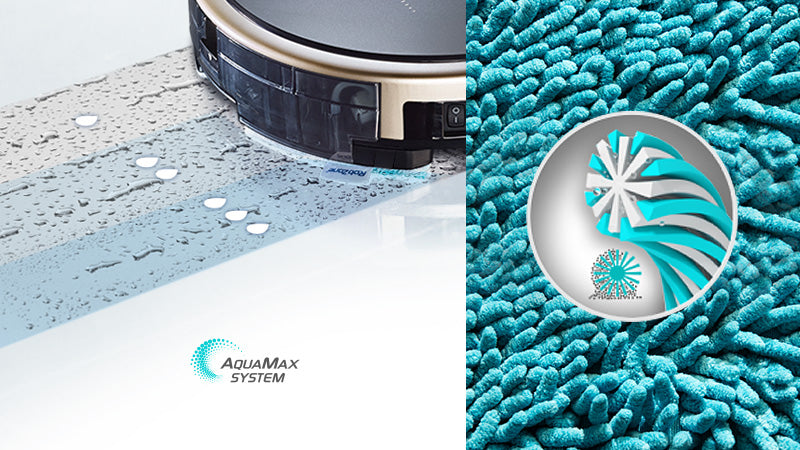 Unikátní systém Aquamax výrazně zlepšuje kvalitu vytírání. Speciální mop je vyroben ze štěpeného mikrovlákna Addsorb Fibre, které dokáže navázat mnohonásobně víc nečistot než jiné textilie. Špínu uzamkne uvnitř vláken a na povrch propouští jen čistou vodu. Bez máchání zvládne vytřít i větší plochu. Elektronické dávkování vody umožňuje nastavit intenzitu vytírání podle typu podlahy a jejího znečištění.