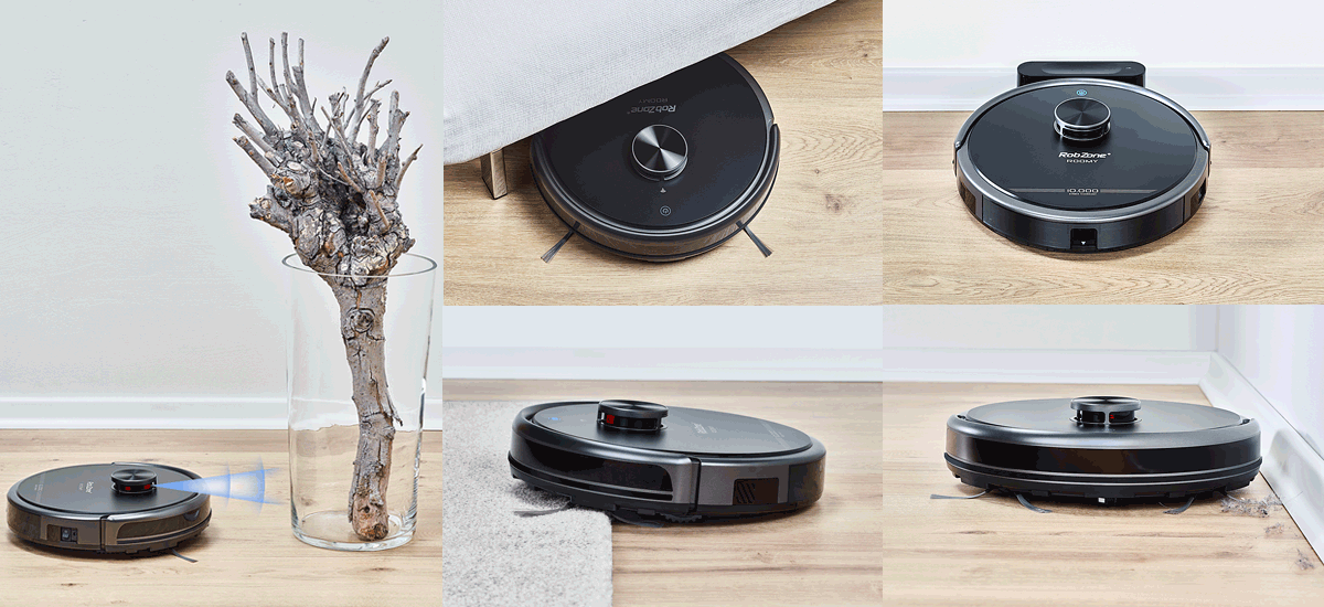 Roomy Supra je výkonný robotický vysavač se specializací na důkladné vysávání koberců a hladkých podlah. Díky inteligentní funkci Boost Effect ihned rozpozná znečištěný koberec a automaticky zahájí hloubkové turbo sání. Na hladké podlahy je vybaven speciálním Anti-Dust systémem, kdy pomocí speciálního kartáče v kombinaci filtrací Nano Air zbaví podlahu až 99,97% toho nejjemnějšího prachu. Neuniknou mu ani prachové chuchvalce v rozích a podél stěn.