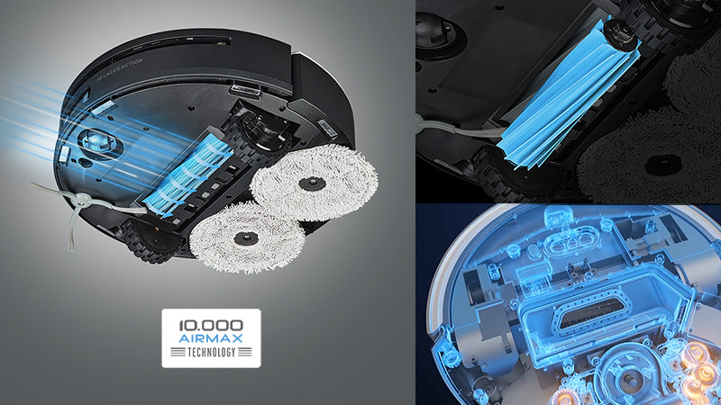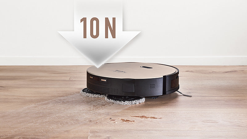Při najetí na koberec robot automaticky zvedne mopy, zesílí sací výkon a plynule pokračuje v úklidu. Mopy zvedne až do výšky 1,5 cm tedy téměř dvojnásobek výšky, než zvládnou jiné mopy a díky tomu dokáže uklízet i koberce s delším vlasem.